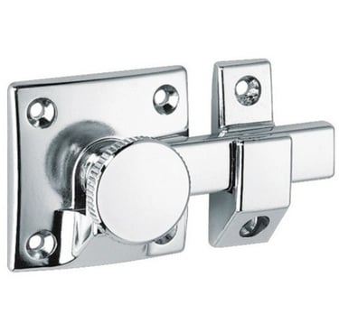 Les verrous à coulisse ou "à plaquer", souvent fermés, sont munis d’un boîtier, dans lequel coulisse une longue tige plate ou demi-ronde, avec à l'aide un bouton. Une gâche à fixer sur l’encadrement reçoit la tige.